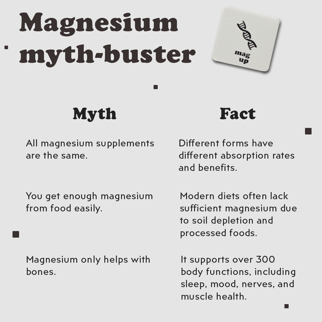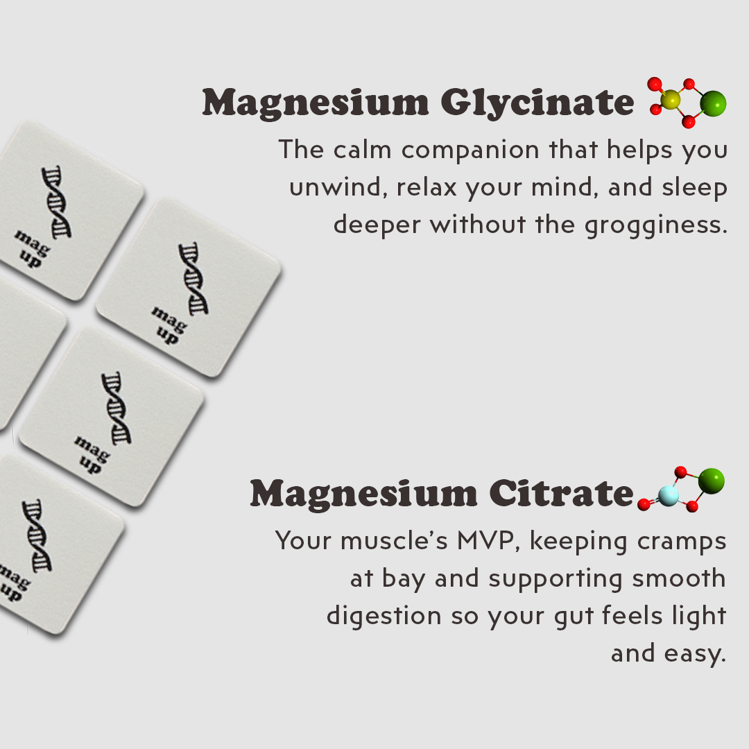 Many people struggle to absorb magnesium orally, or experience digestive issues (like bloating or diarrhea) when they do. Mag up solves this by delivering the mineral through the skin (transdermal delivery), ensuring you get the benefits of magnesium comfortably and efficiently.